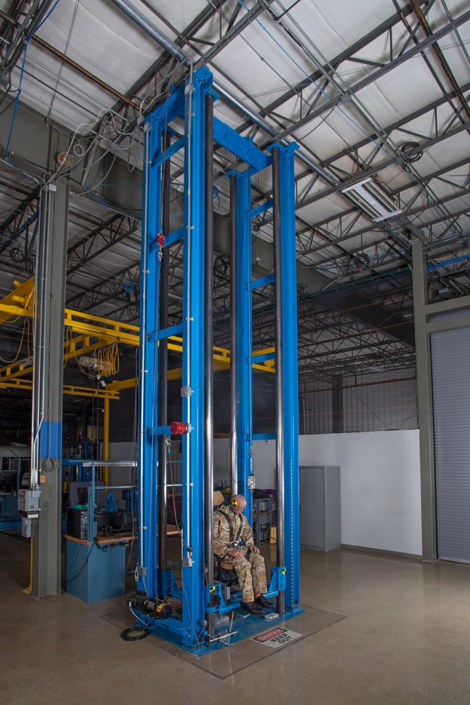 Researchers seeking ways to mitigate the energy of an IED blast will find CAPE’s new drop tower capable of reproducing situations with impacts up to 350G and speeds up to 20 MPH using a seated test dummy.